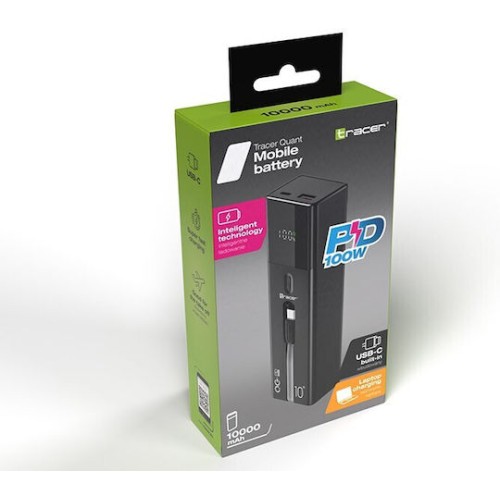 Tracer Power Bank 10000mAh 100W με Θύρα USB-A και Θύρα USB-C Μαύρο