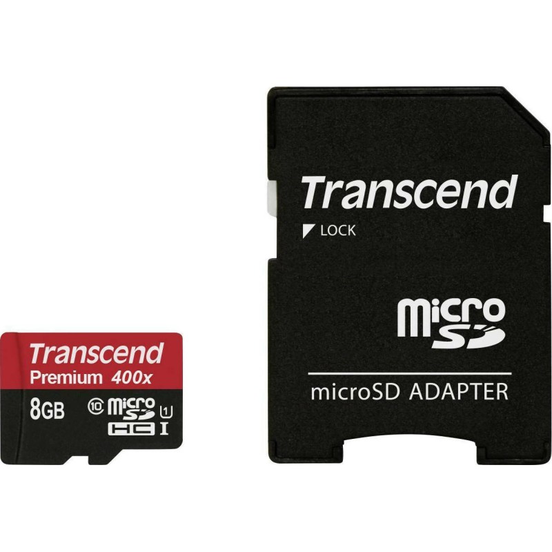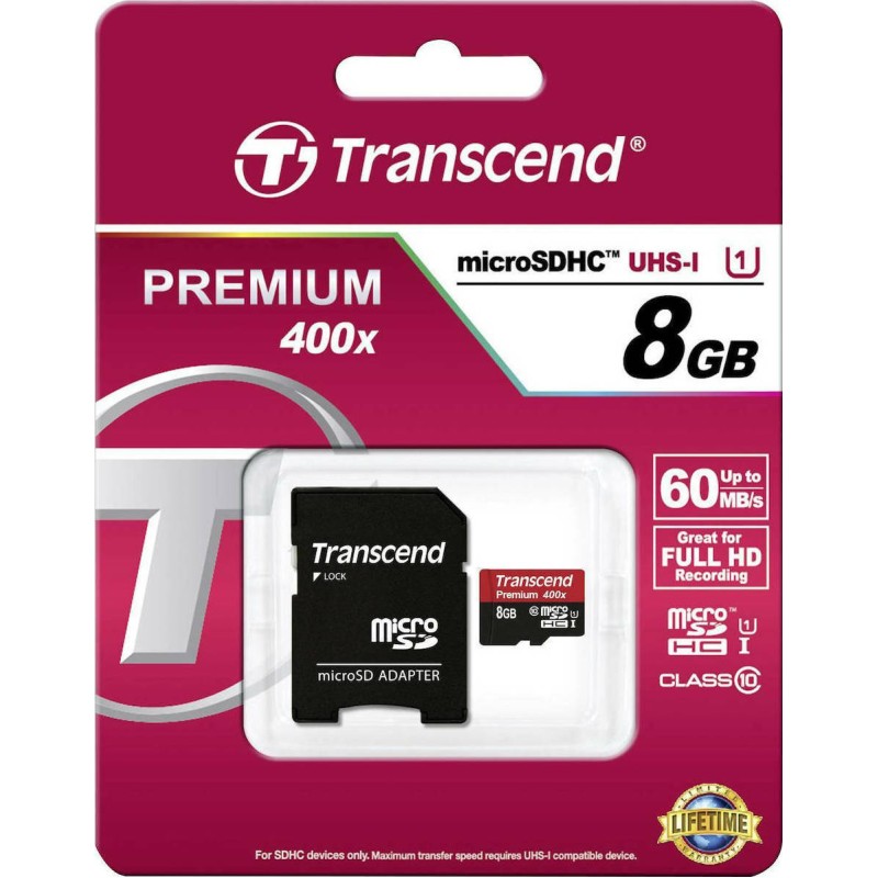 Transcend Premium 400x microSDHC 8GB Class 10 U1 UHS-I με αντάπτορα (TS8GUSDU1)