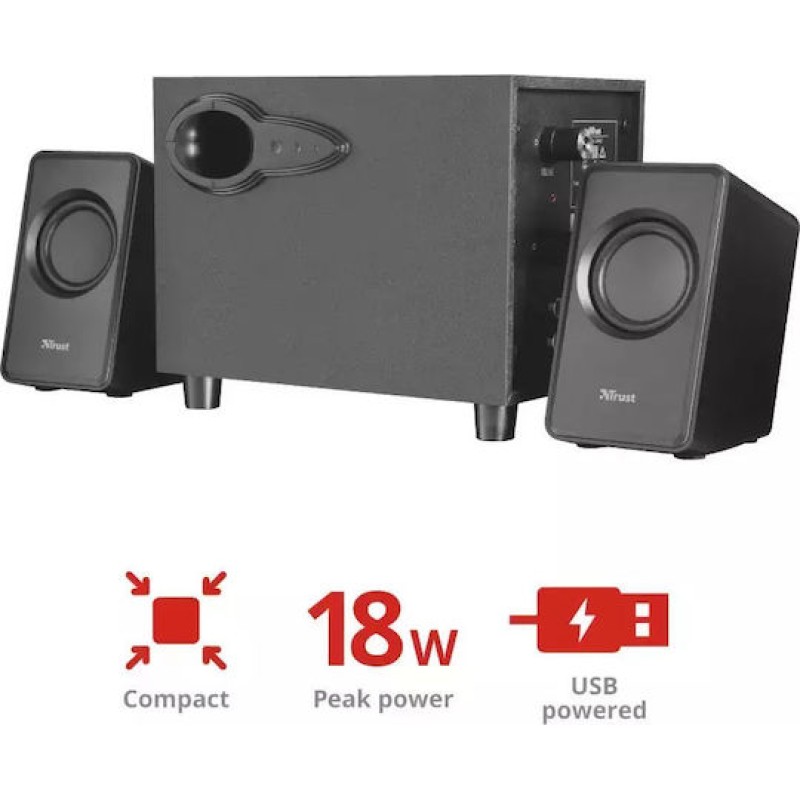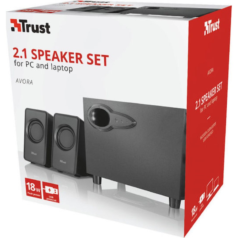 Trust Avora Ηχεία Υπολογιστή 2.1 με Ισχύ 18W σε Μαύρο Χρώμα (20442)