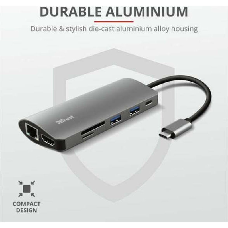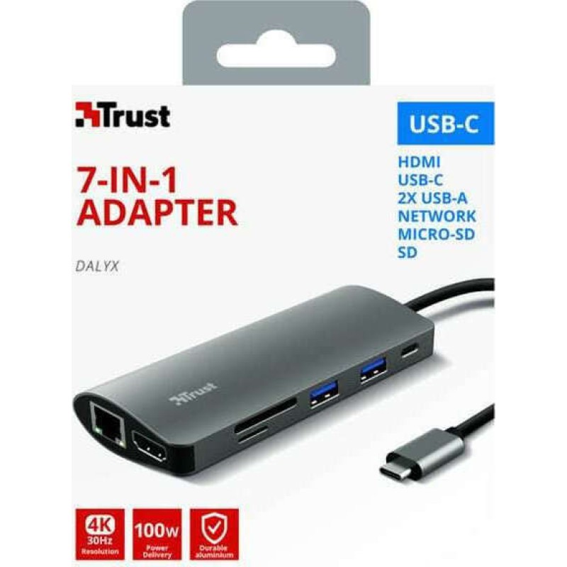 Trust Dalyx 7-in-1 USB-C Docking Station με HDMI 4K PD Ethernet Ασημί (23775)