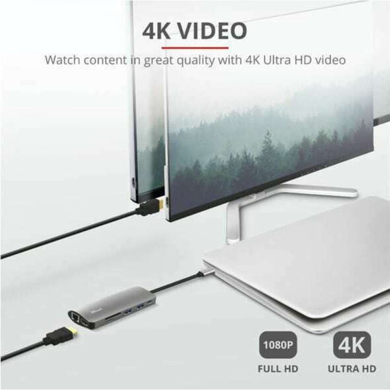 Κομψός προσαρμογέας πολλαπλών θυρών για προσθήκη HDMI, δικτύου, συσκευής ανάγνωσης καρτών, θύρες USB-C και USB στον φορητό υπολογιστή σας χρησιμοποιώντας μία μόνο σύνδεση USB-C.