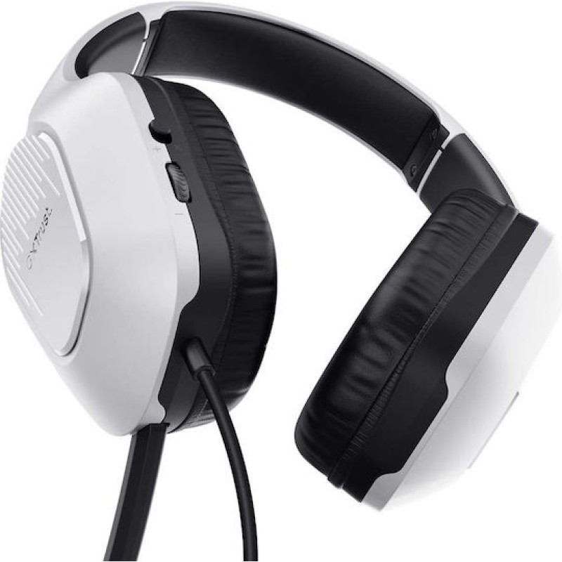 Ένα δυνατό και άνετο gaming headset — Trust GXT 415PS Zirox — σχεδιασμένο για PS5. Μεγάλα 50mm drivers για καθαρό, ισχυρό ήχο και βάρος μόλις 244 γρ., ώστε να μην το αισθάνεσαι μετά από ώρες χρήσης. Διαθέτει αναδιπλούμενο μικρόφωνο που κρύβεται, mute + έλεγχο έντασης επάνω στο αυτί, καθώς και ρυθμιζόμενο headband για καλύτερη εφαρμογή.