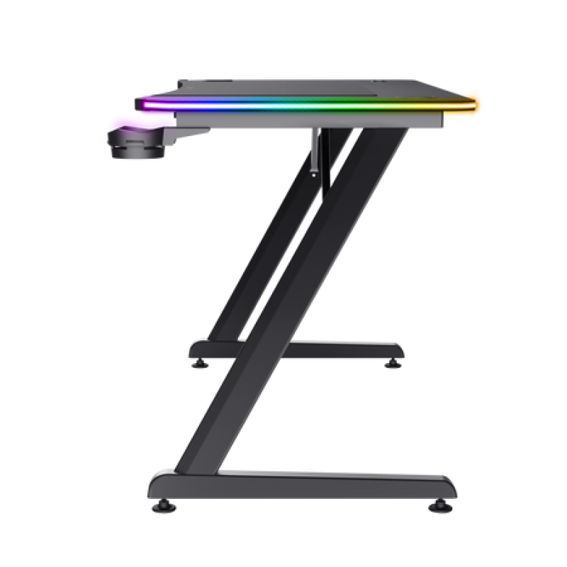Στιβαρό φωτιζόμενο γραφείο gaming με φωτισμό RGB σε 3 πλευρές, με ασύρματο φορτιστή