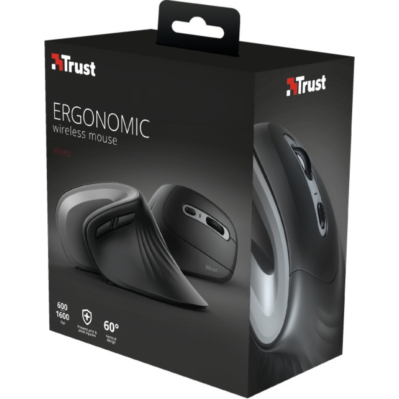 Trust Verro Ασύρματο Vertical Ποντίκι Μαύρο (23507)