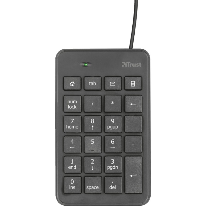 Τα προϊόντα που δεν αναγράφουν διαθέσιμο σημαίνει ότι δεν υπάρχουν άμεσα διαθέσιμα στο κατάστημα και θα παραληφθούν το αργότερο εντός των εργάσιμων ημερών που αναγράφεται στη διαθεσιμότητα. Σε κάθε περίπτωση η ημερομηνία μπορεί να μεταβληθεί και θα υπάρχει σχετική ενημέρωσή σας.Ενσύρματο αριθμητικό πληκτρολόγιο της εταιρείας Trust, ιδανικό για φορητούς υπολογιστές. Συνδέεται μέσω του ενσωματωμένου καλωδίου USB.