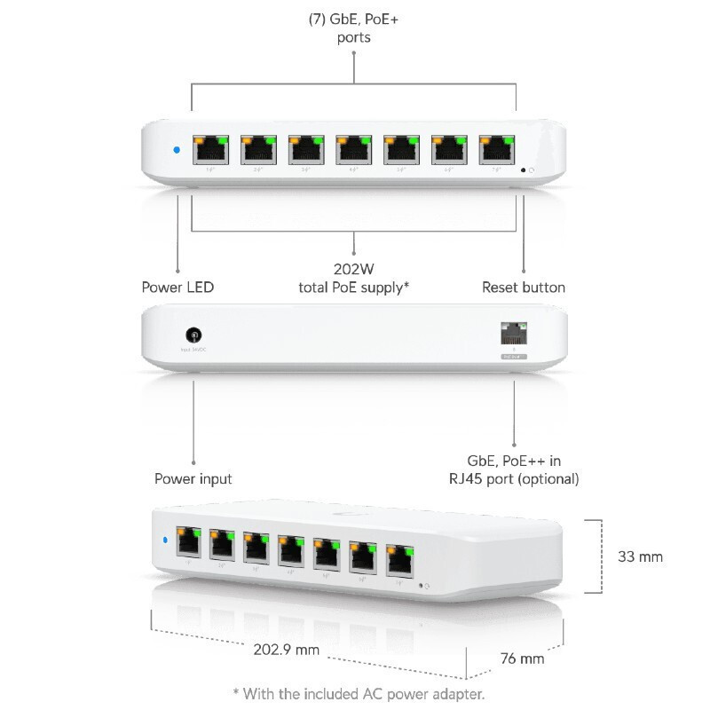 8-Port (7-port PoE+ max 202W συνολικά)