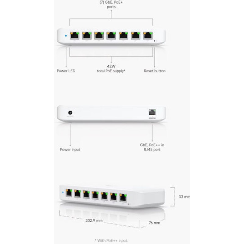 Ubiquiti Ultra Unmanaged L2 PoE Switch με 8 Θύρες Gigabit (1Gbps) Ethernet (USW-ULTRA)