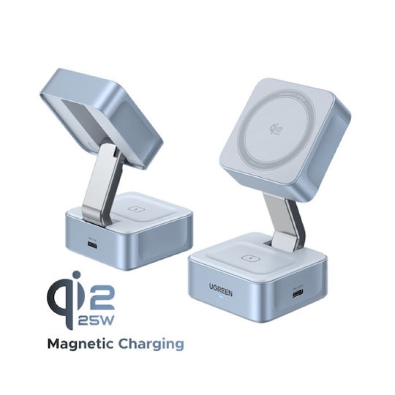 Ugreen Ασύρματος Φορτιστής Qi2 GaN με Θύρα USB-C και Καλώδιο USB-C 25W Γκρι (W752) (W752/55960B)