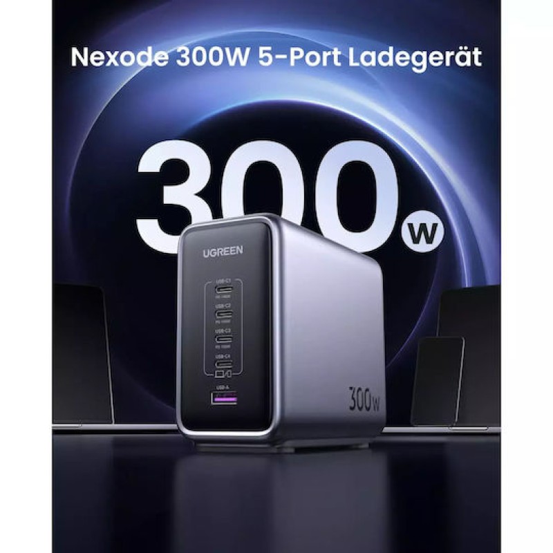 Ugreen Βάση Φόρτισης GaN με Θύρα USB-A και 4 Θύρες USB-C 300W Power Delivery σε Μαύρο χρώμα (Nexode)