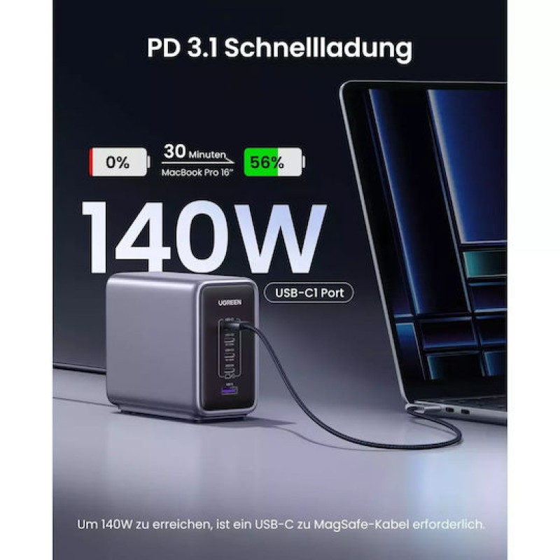 Ugreen Βάση Φόρτισης GaN με Θύρα USB-A και 4 Θύρες USB-C 300W Power Delivery σε Μαύρο χρώμα (Nexode) (CD333 /90903B)