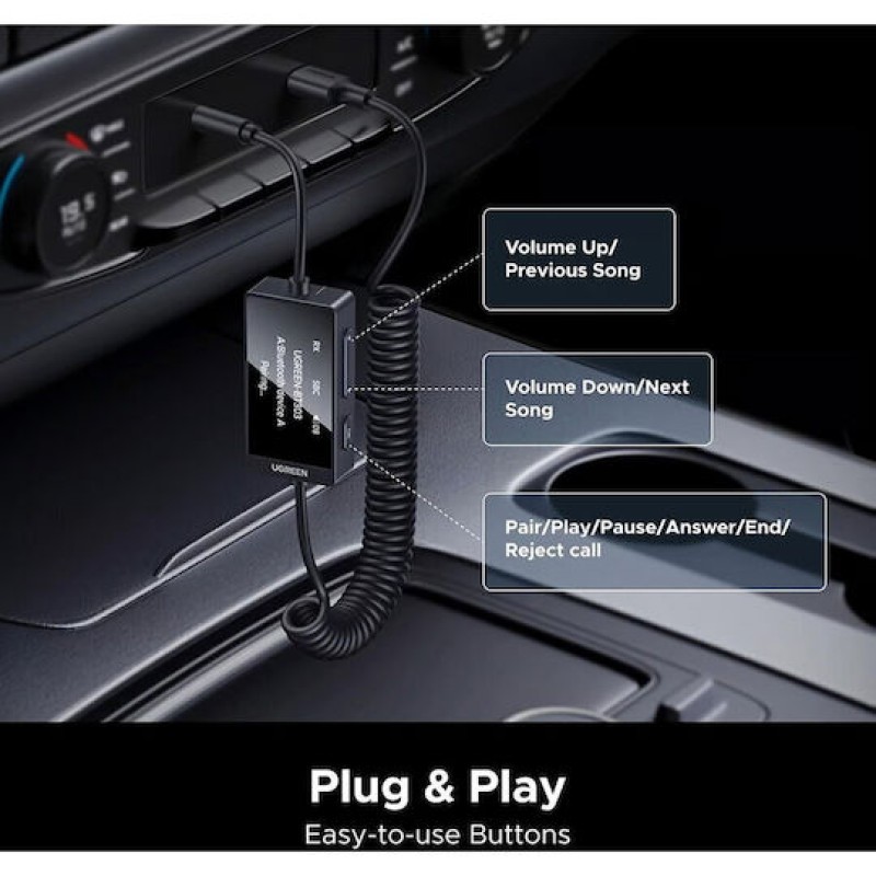 Ugreen Bluetooth Receiver με θύρα εξόδου USB και Μικρόφωνο (BT303/45236)