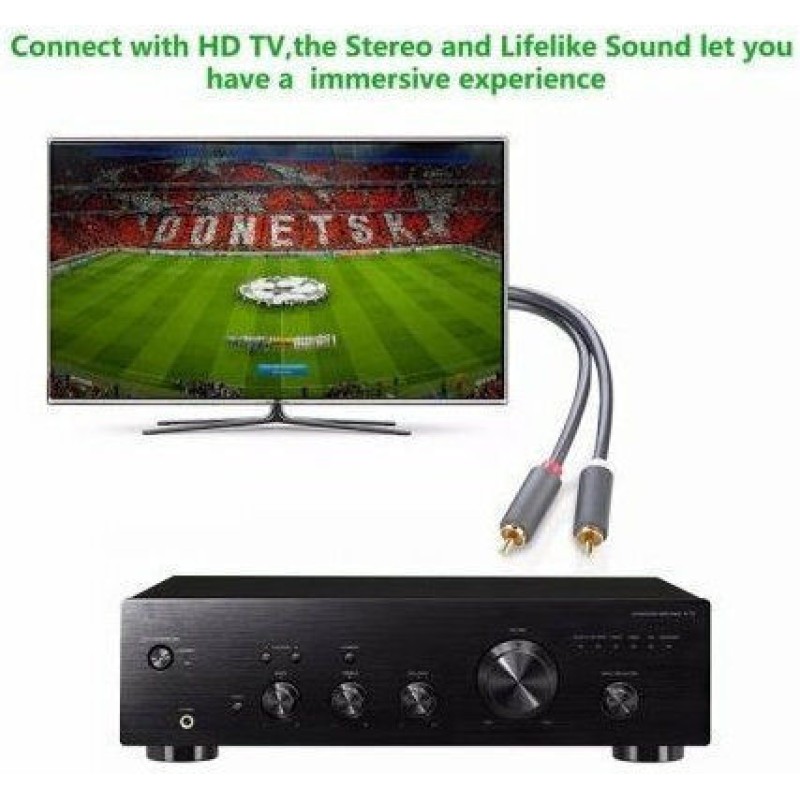 Στερεοφωνικό καλώδιο ήχου με βύσματα RCA, κατάλληλο για σύνδεση συσκευής ήχου, όπως CD, DVD player σε ενισχυτή.
