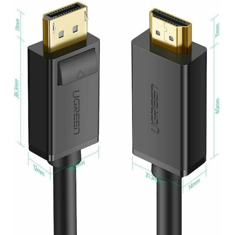 Τα προϊόντα που δεν αναγράφουν διαθέσιμο σημαίνει ότι δεν υπάρχουν άμεσα διαθέσιμα στο κατάστημα και θα παραληφθούν το αργότερο εντός των εργάσιμων ημερών που αναγράφεται στη διαθεσιμότητα. Σε κάθε περίπτωση η ημερομηνία μπορεί να μεταβληθεί και θα υπάρχει σχετική ενημέρωσή σας.Το καλώδιο της εταιρείας Ugreen έχει μήκος 1m και μετατρέπει το σήμα μιας οθόνης από DisplayPort σε HDMI. Οι ακροδέκτες είναι επίχρυσοι για ταχύτατη αναμετάδοση δεδομένων χωρίς παρεμβολές.
