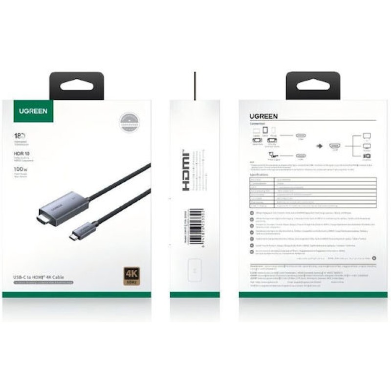 Ugreen Cable HDMI male - USB-C male 2m Γκρι