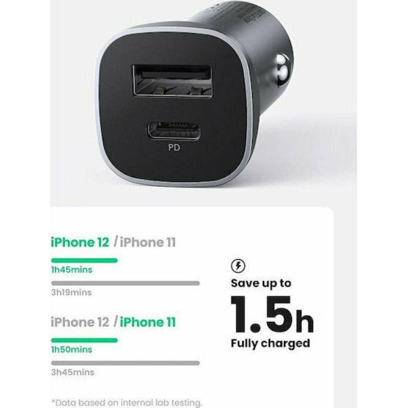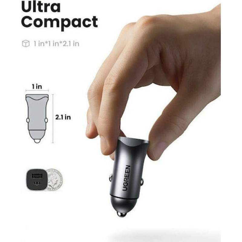 Τα προϊόντα που δεν αναγράφουν διαθέσιμο σημαίνει ότι δεν υπάρχουν άμεσα διαθέσιμα στο κατάστημα και θα παραληφθούν το αργότερο εντός των εργάσιμων ημερών που αναγράφεται στη διαθεσιμότητα. Σε κάθε περίπτωση η ημερομηνία μπορεί να μεταβληθεί και θα υπάρχει σχετική ενημέρωσή σας.Ο φορτιστής αυτοκινήτου Ugreen CD130 με δύο θύρες (USB Type A+PD) προσφέρει πρόσβαση σε πηγή φόρτισης κατά τη διάρκεια της οδήγησης. Είναι σημαντικό, ανεξαρτήτως απόστασης, να έχετε τη δυνατότητα να συνδέσετε συσκευές όπως GPS, τηλέφωνο ή ταμπλέτα.