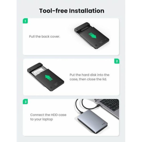 Ugreen Cm300 Θήκη για Σκληρό Δίσκο 2.5" SATA III με σύνδεση Type-C σε Γκρι χρώμα (70498)
