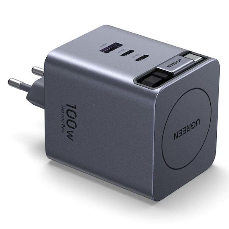 Ugreen Φορτιστής GaN με Θύρα USB-A και 2 Θύρες USB-C και Καλώδιο USB-C 100W Power Delivery Γκρι (X616)