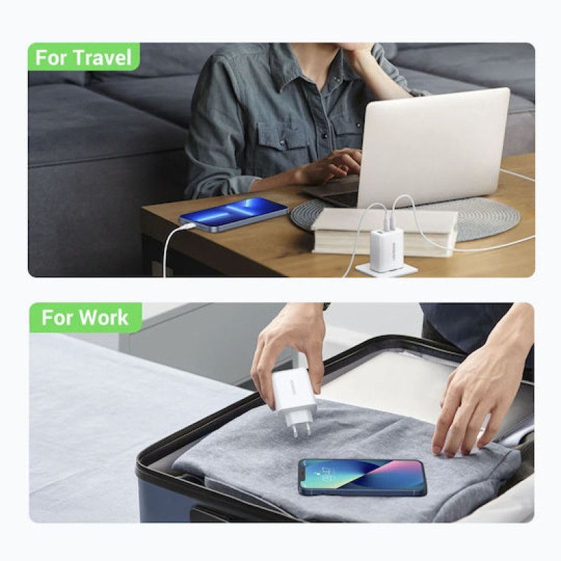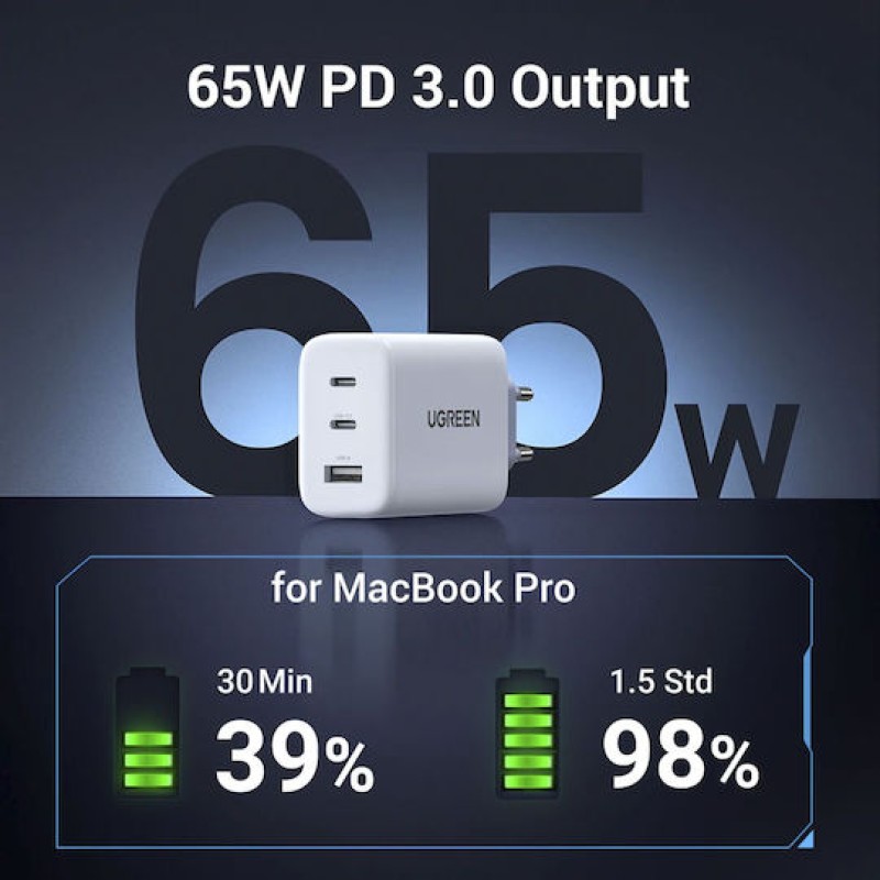 Ugreen Φορτιστής Χωρίς Καλώδιο GaN με Θύρα USB-A και 2 Θύρες USB-C 65W Power Delivery Λευκός (CD275) (120949)