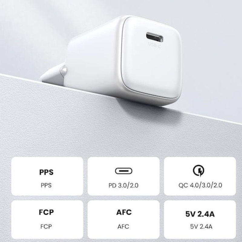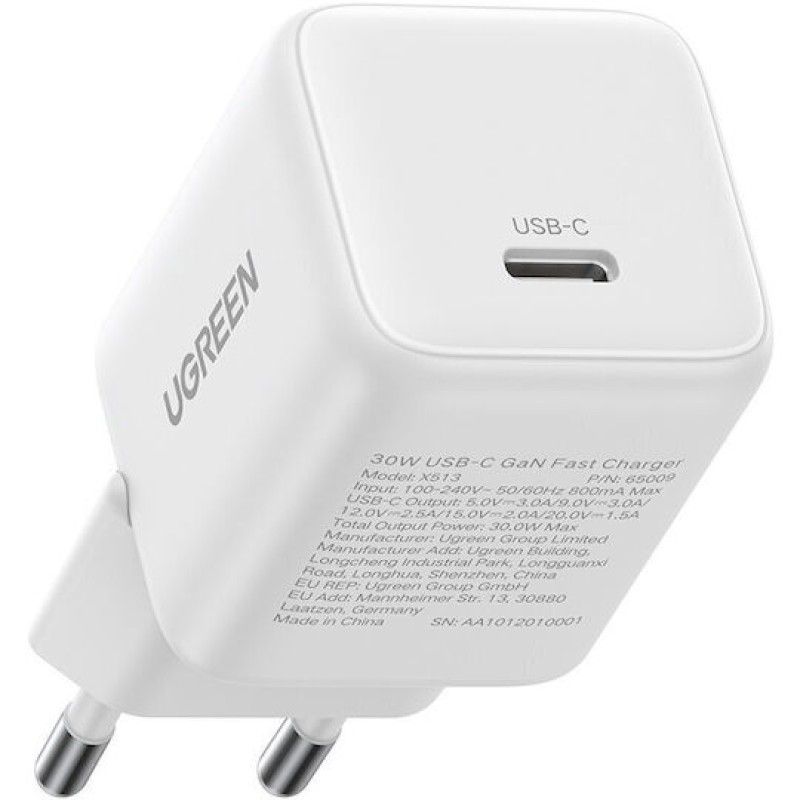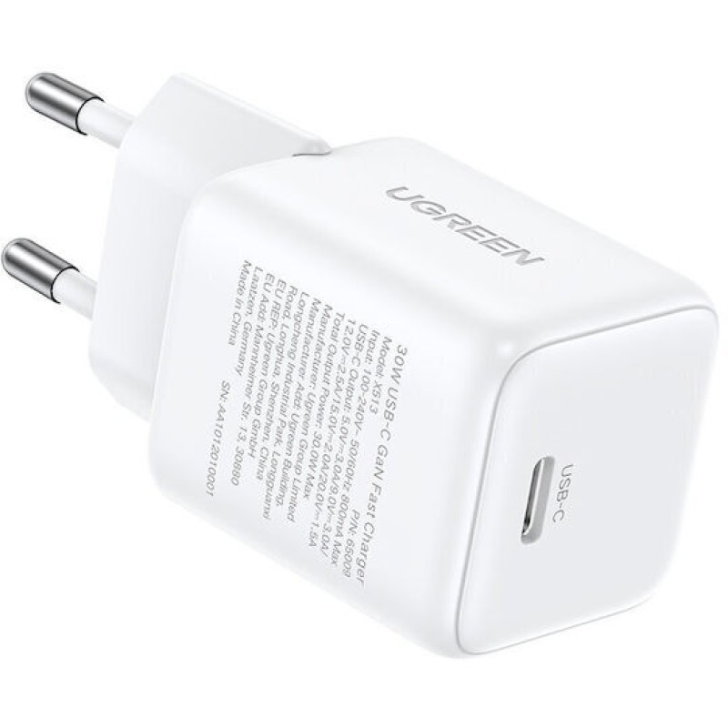 Ugreen Φορτιστής Χωρίς Καλώδιο GaN με Θύρα USB-C 30W Power Delivery / Quick Charge 4.0 Λευκός (X513) (195060)