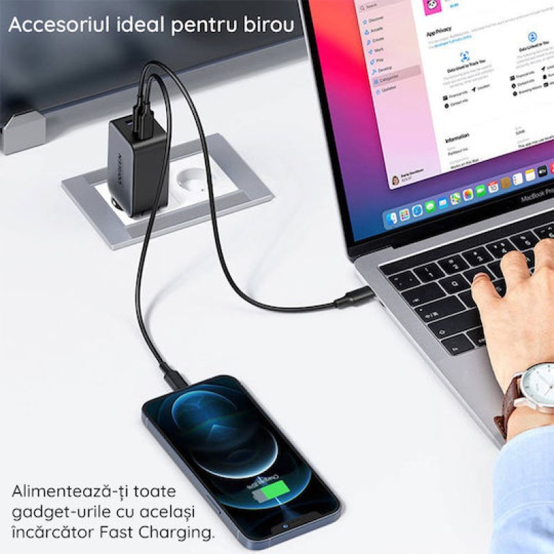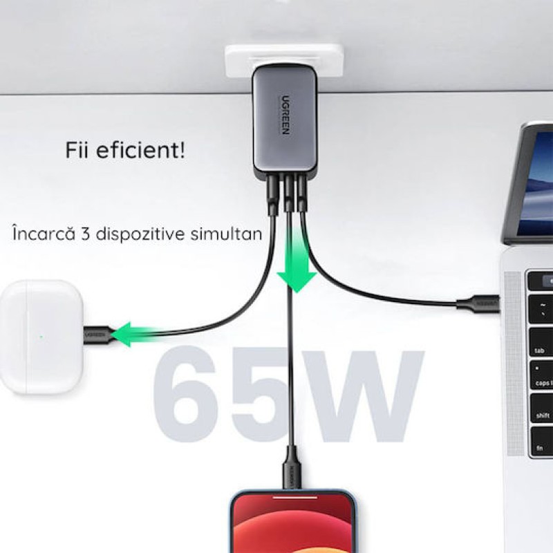 Ugreen Φορτιστής Χωρίς Καλώδιο με Θύρα USB-A και 2 Θύρες USB-C 65W Λευκός (Nexode ) (15334)