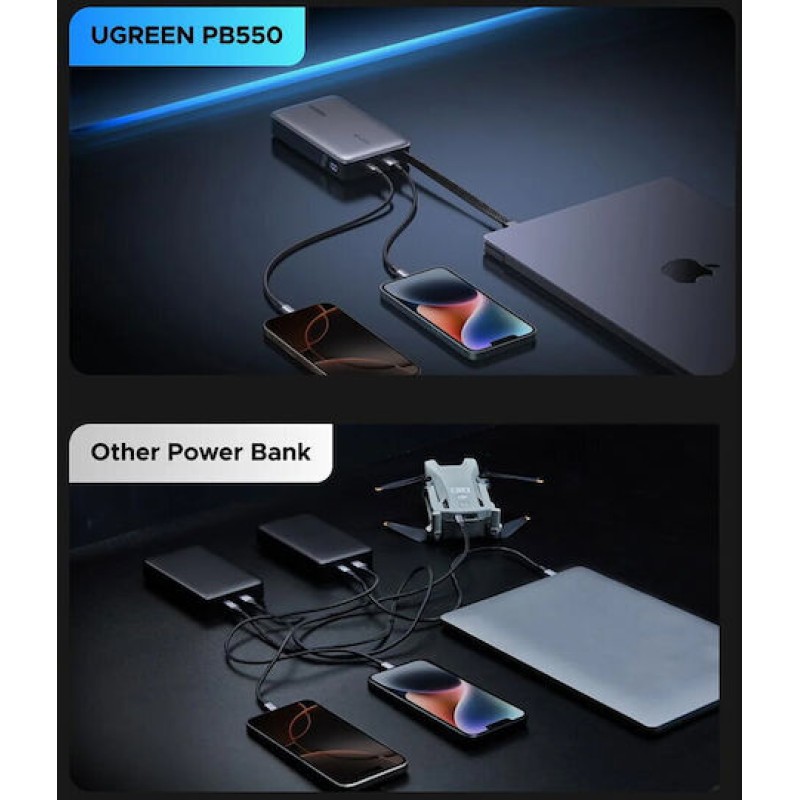 Ugreen PB550 Power Bank 20000mAh 67W με Θύρα USB-A και Θύρα USB-C Power Delivery Γκρι (PB550/55996B)