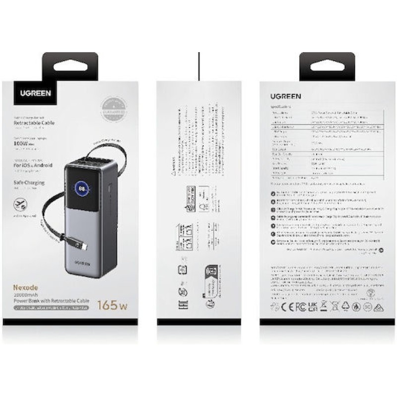 Ugreen PB726 Power Bank 20000mAh 165W με Θύρα USB-A και Θύρα USB-C Power Delivery Γκρι (PB726/55987B)