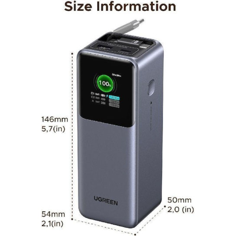Ugreen PB726 Power Bank 20000mAh 165W με Θύρα USB-A και Θύρα USB-C Power Delivery Γκρι