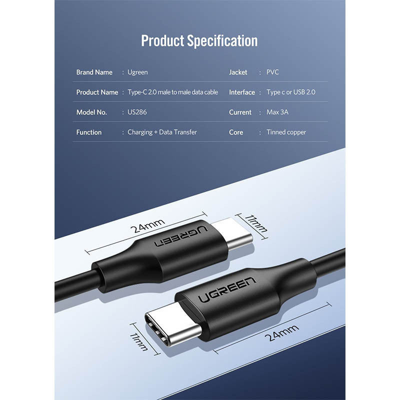 Ugreen Regular USB Cable USB C male - USB C male Μαύρο 1m (50997) (50997)