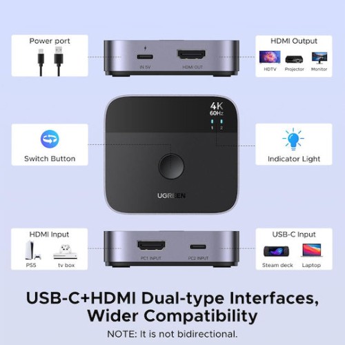 Ugreen USB 2.0 Hub 2 Θυρών με σύνδεση USB-C (AW502/55451)