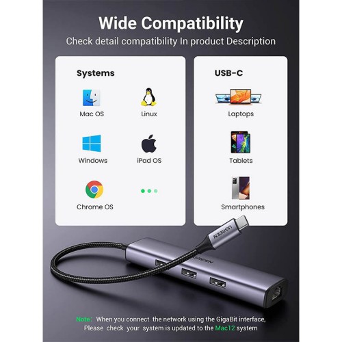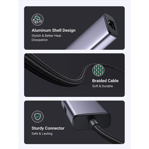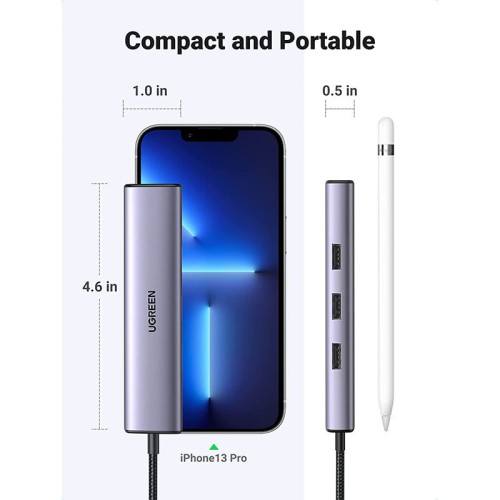 Το USB hub της εταιρείας Ugreen διαθέτει 3 θύρες εξόδου USB 3.0, κατάλληλες για να συνδέσετε ταυτόχρονα στον υπολογιστή, συσκευές όπως ποντίκια, στικάκια, εξωτερικούς σκληρούς δίσκους, πληκτρολόγια και πολλά άλλα. Επιπλέον, η διαθέσιμη θύρα ethernet δίνει τη δυνατότητα για άμεση ενσύρματη σύνδεση του υπολογιστή σας στο διαδίκτυο. Τροφοδοτείται μέσω του καλωδίου USB που συνδέεται στον υπολογιστή σας.