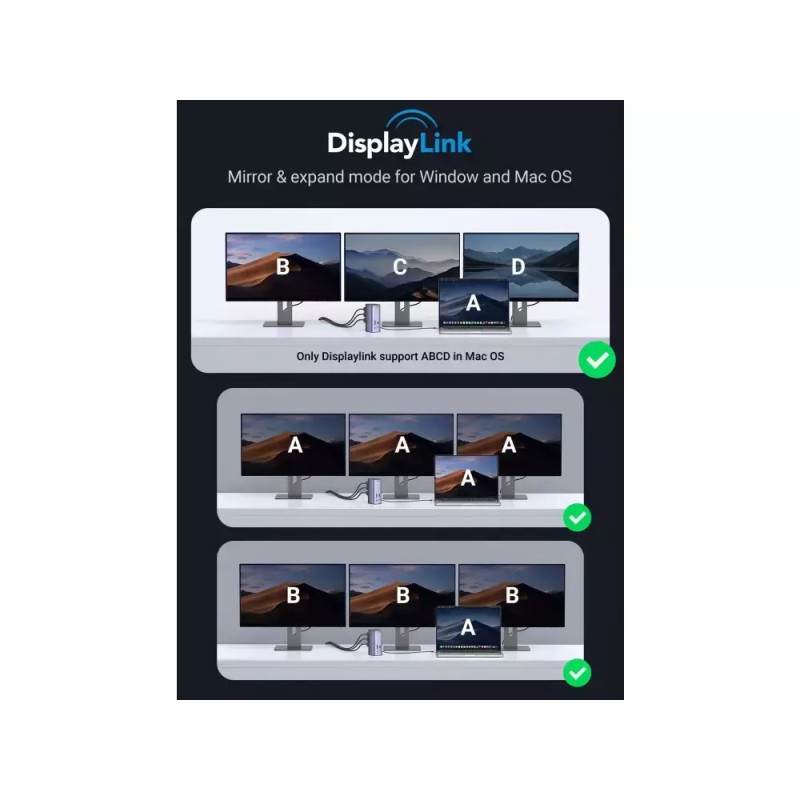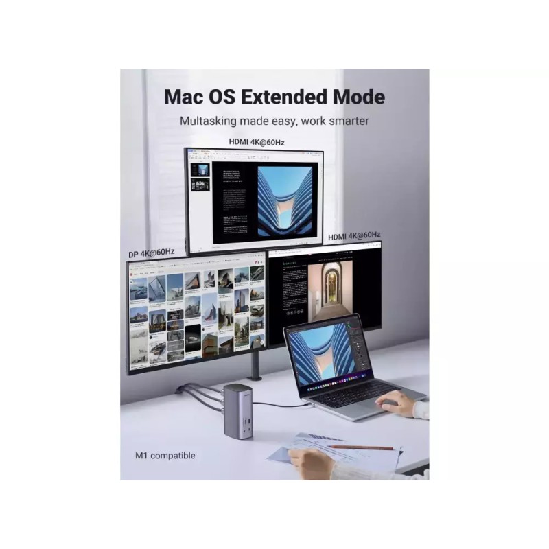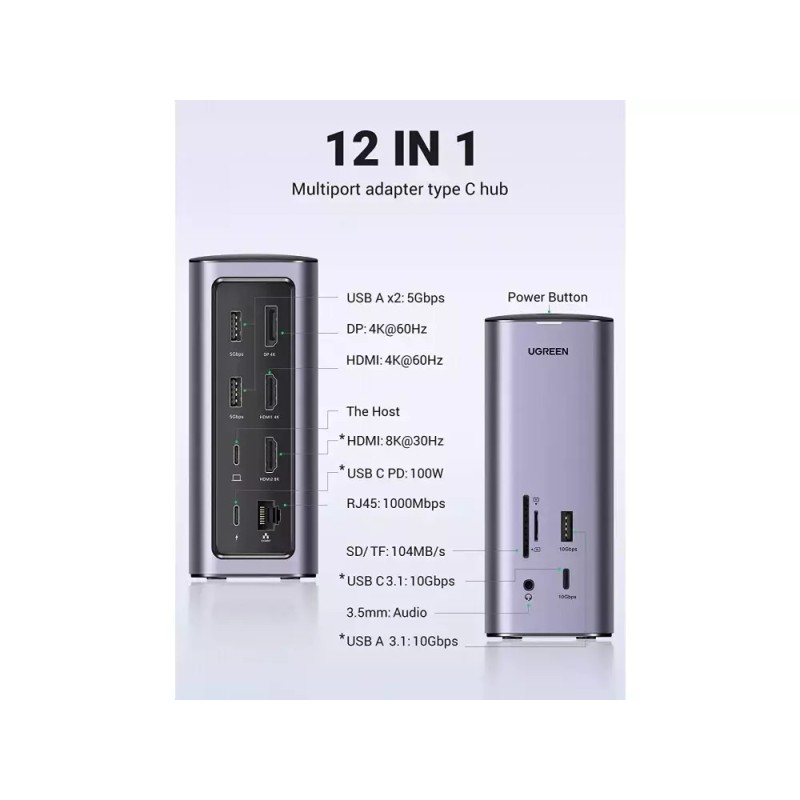 Ugreen USB-C Docking Station με HDMI/DisplayPort 4K PD Ethernet και συνδεση 3 Οθονών Ασημί (90325) (90325)