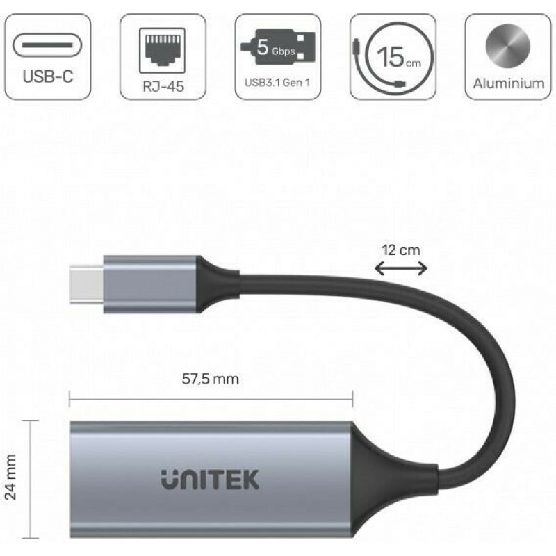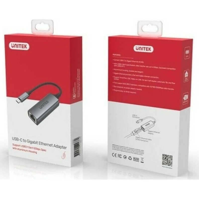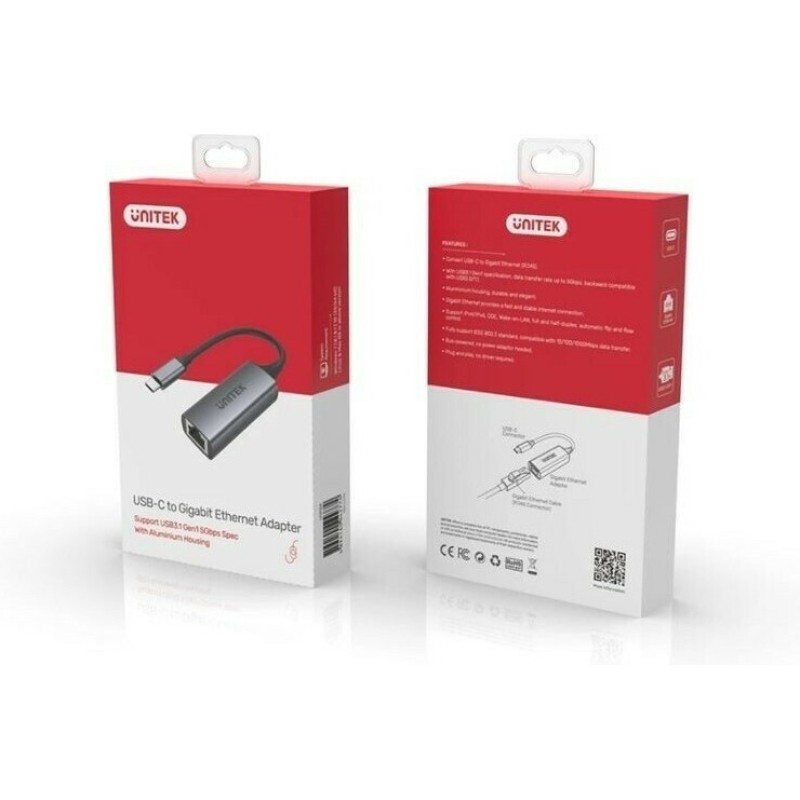 Ο USB αντάπτορας δικτύου της εταιρείας Unitek συνδέεται σε μια θύρα USB-C του υπολογιστή ή του laptop σας και τη μετατρέπει σε θύρα ethernet, με ταχύτητες έως και 1000Mbps. Είναι χρήσιμος σε υπολογιστές που δεν διαθέτουν θύρα ethernet, δίνοντας την ευχέρεια να αποκτήσετε ενσύρματη πρόσβαση στο διαδίκτυο.