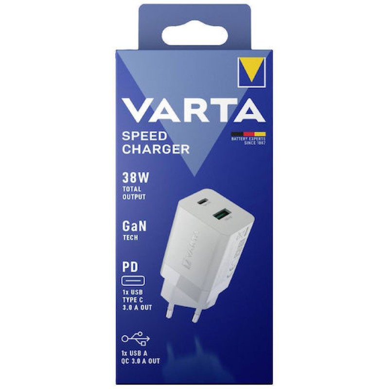 Ο Varta φορτιστής είναι σε λευκό χρώμα, κάνοντάς τον κομψό και συμβατό με κάθε περιβάλλον. Είναι ο τέλειος σύντροφος για τις συσκευές σας, προσφέροντας αξιόπιστη φόρτιση παντού.