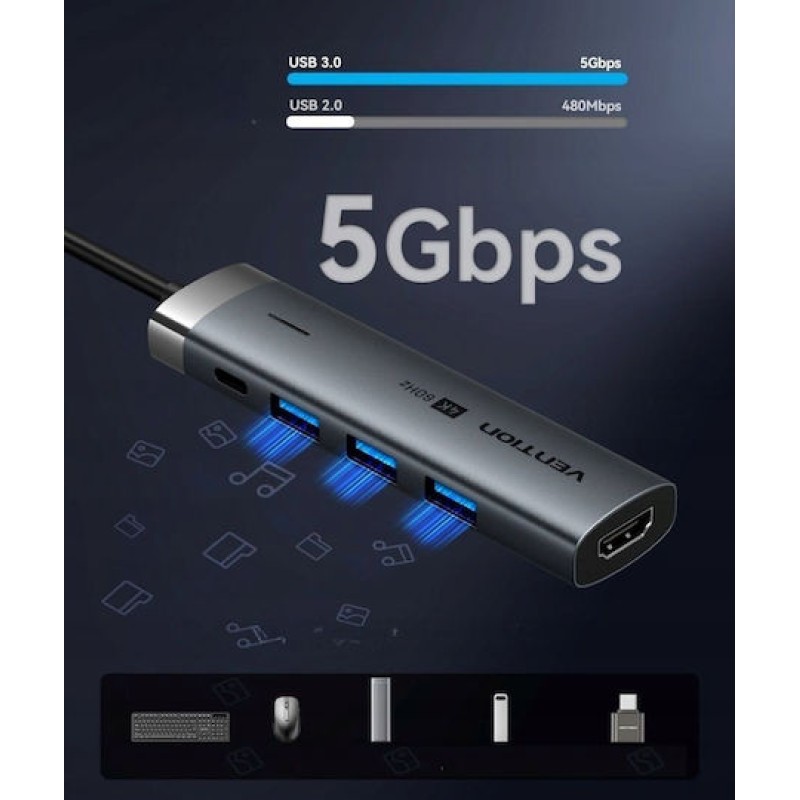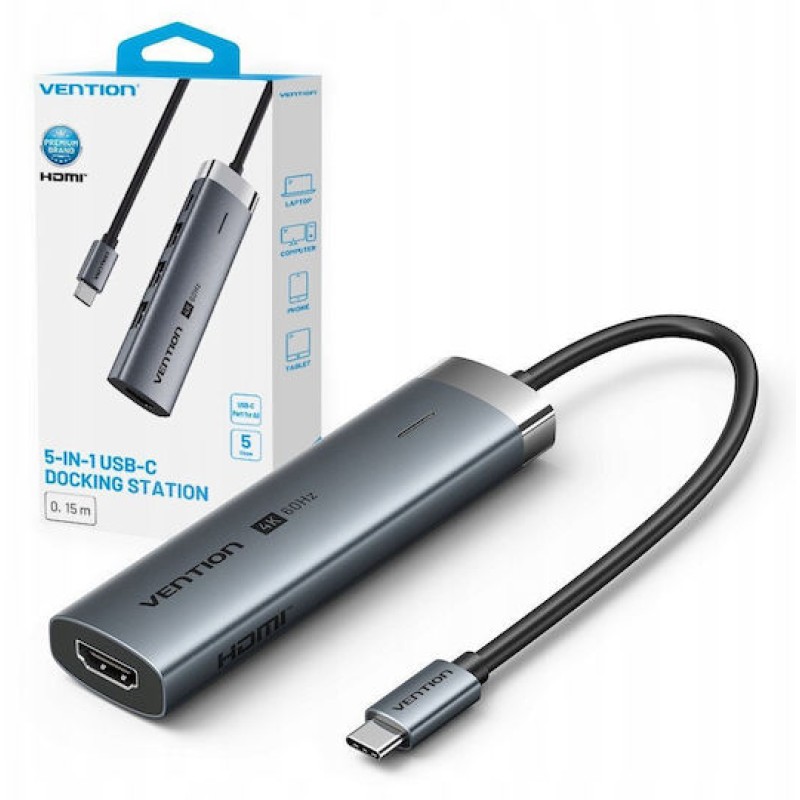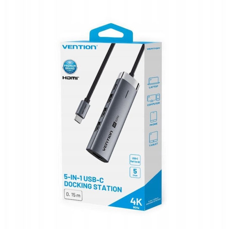 Vention 5-in-1 USB-C Docking Station με HDMI 4K PD Γκρι (TGMHB)