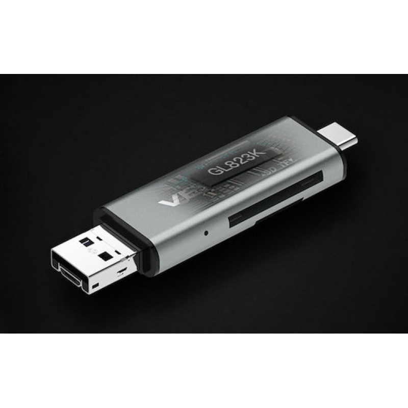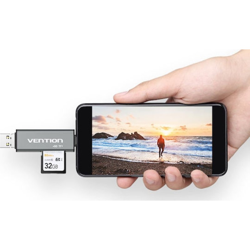 Vention Card Reader USB 2.0 Type-C για SD/microSD Γκρι