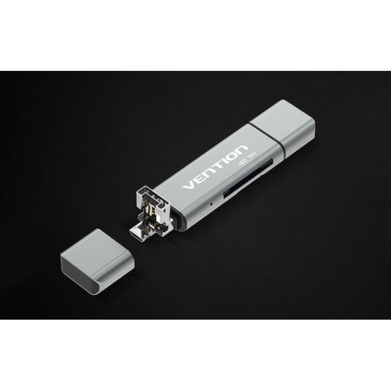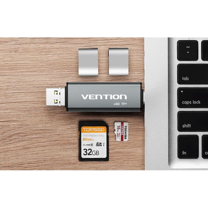 Vention Card Reader USB 2.0 Type-C για SD/microSD Γκρι (CCJH0)