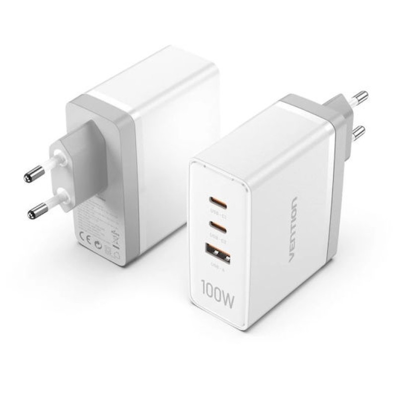 Vention Φορτιστής Χωρίς Καλώδιο GaN με Θύρα USB-A και 2 Θύρες USB-C 100W Power Delivery / Quick Charge 3.0 Λευκός (FEGW0-EU) (FEGW0-EU)