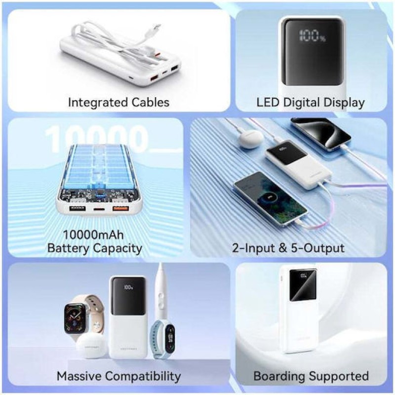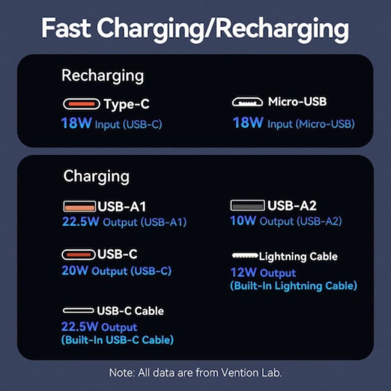 Vention Power Bank 10000mAh 22.5W με 2 Θύρες USB-A και Θύρα USB-C Μαύρο (FHOB0)