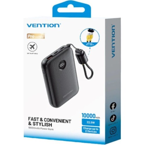 Vention Power Bank 10000mAh 22.5W με Θύρα USB-A και Θύρα USB-C Μαύρο (FKAB0-C)