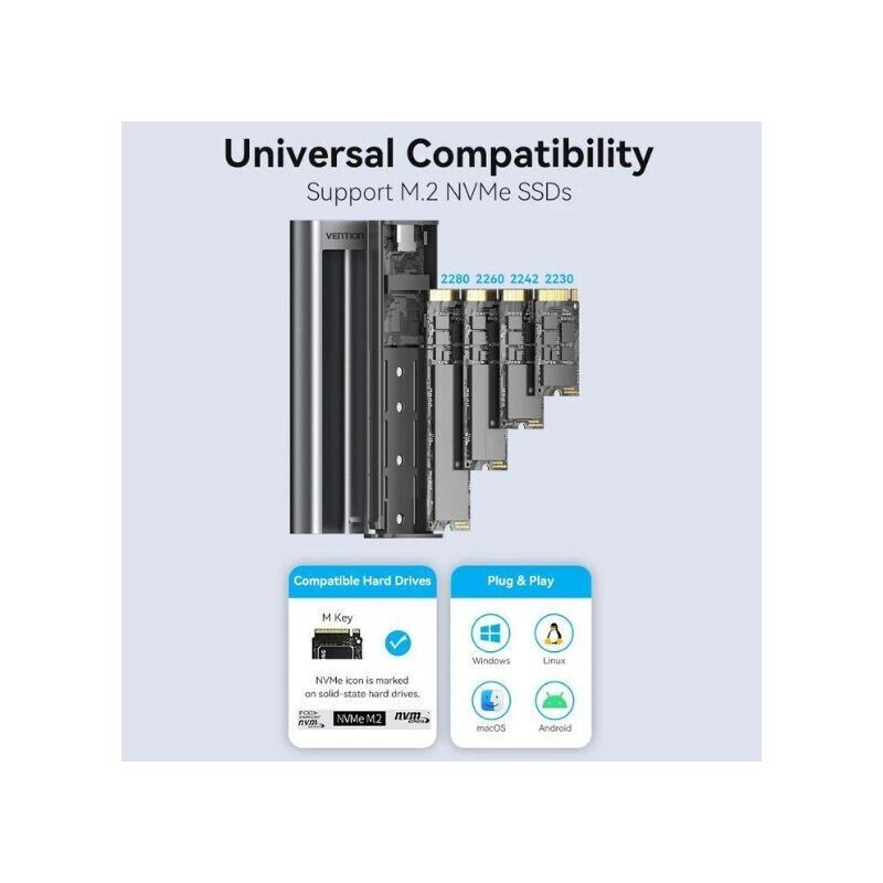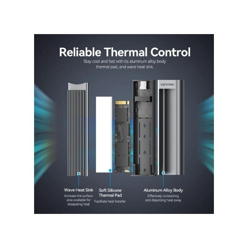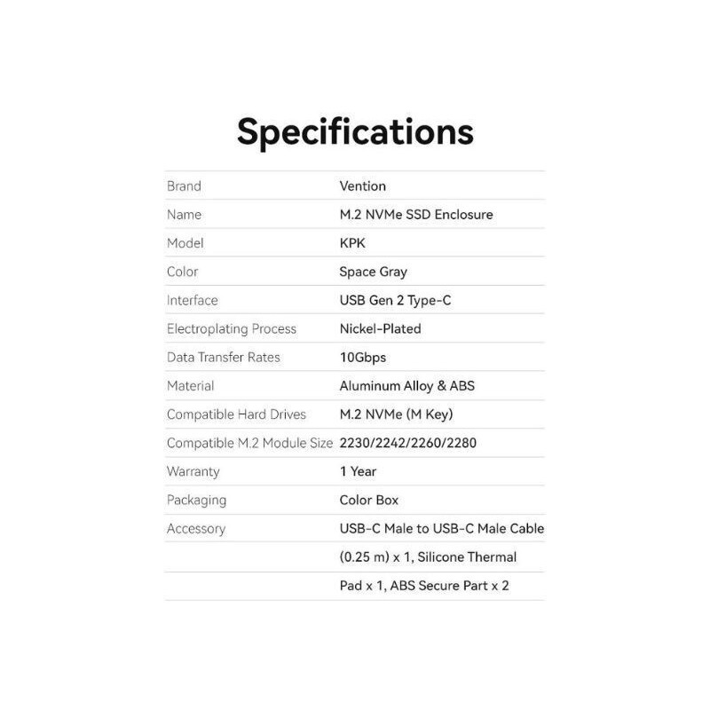Vention Θήκη για Σκληρό Δίσκο M.2 SATA III NVME με σύνδεση Type-C σε Γκρι χρώμα (KPGH0)