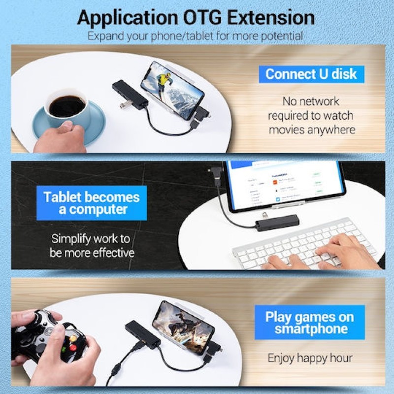 Vention USB 2.0 Hub 4 Θυρών με σύνδεση USB-A (CHMBD)
