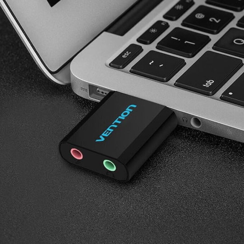 Η Vention USB External Sound Card (Black Metal Type) είναι μια μικρή εξωτερική κάρτα ήχου που συνδέεται μέσω USB και προσθέτει θύρες ακουστικών και μικροφώνου (3.5mm) σε υπολογιστές ή άλλες συσκευές. Είναι ιδανική για laptops χωρίς υποδοχή ήχου ή για αντικατάσταση χαλασμένης κάρτας ήχου.