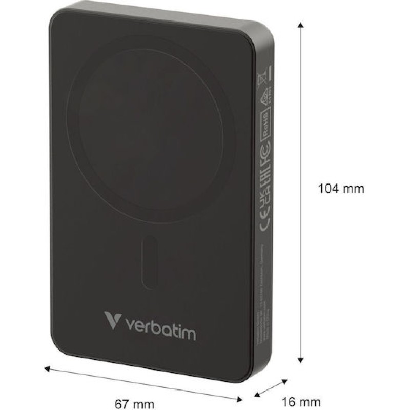 Verbatim Charge 'n' Go MagSafe Power Bank 10000mAh 20W με Θύρα USB-C Power Delivery Μαύρο (32227)