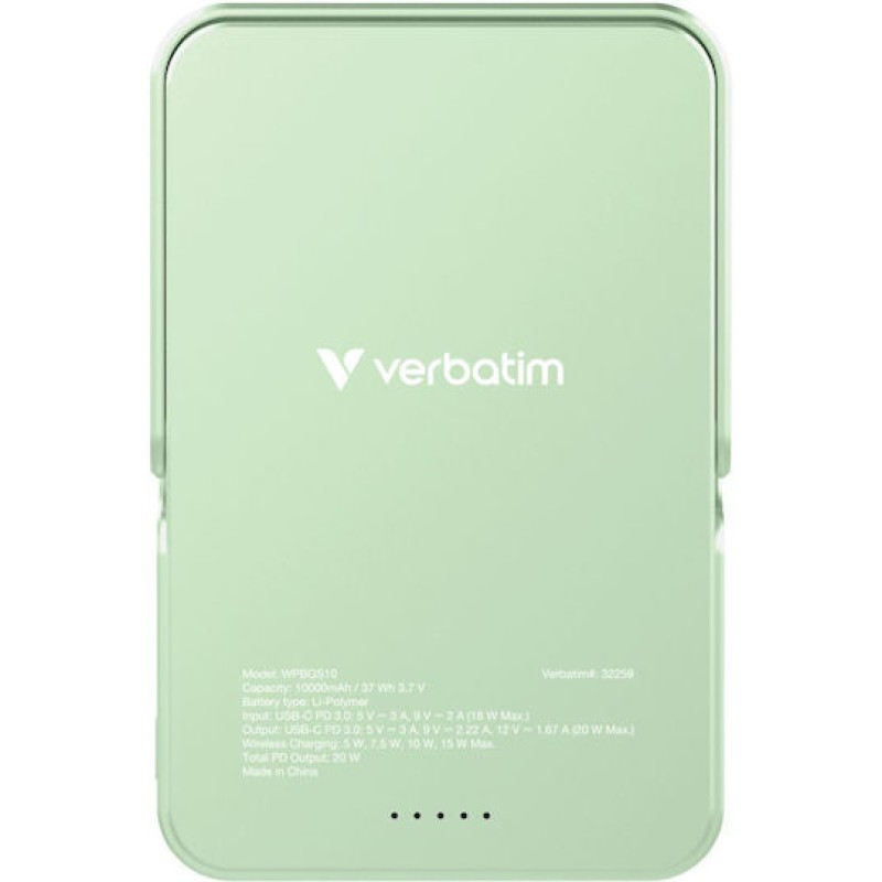 Verbatim Charge 'n' Go MagSafe Power Bank 10000mAh 20W με Θύρα USB-C Power Delivery Πράσινο (32259)