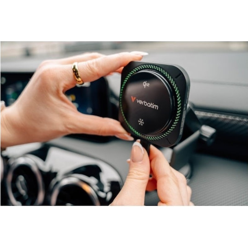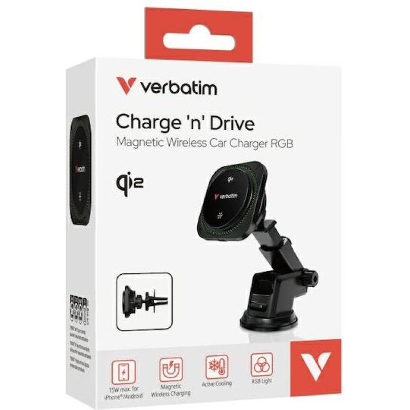 Verbatim Drive Qi2 15w Rgb Βάση Κινητού Αυτοκινήτου με Ρυθμιζόμενα Άγκιστρα και Ασύρματη Φόρτιση Μαύρη (31860)
