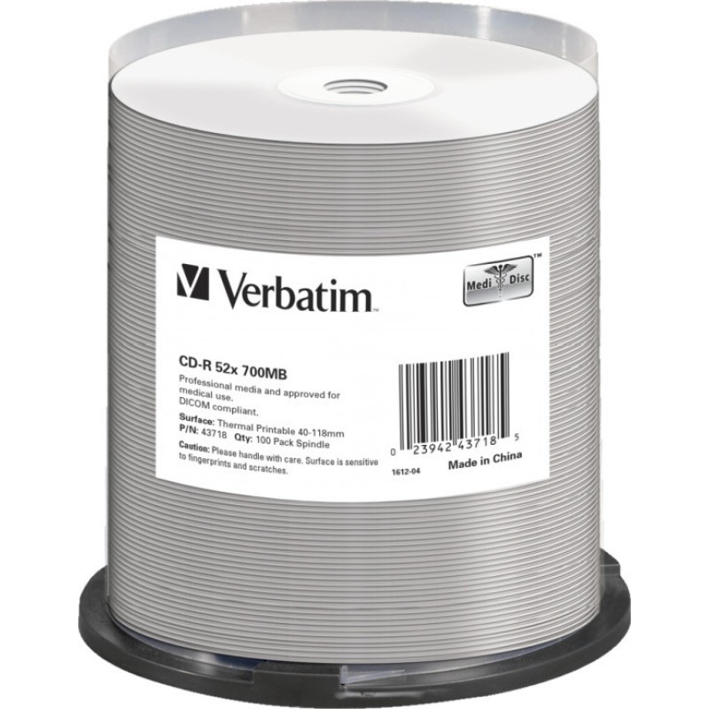 Verbatim Εγγράψιμα CD-R 52x Printable 700MB Cake Box 100τμχ (43718)