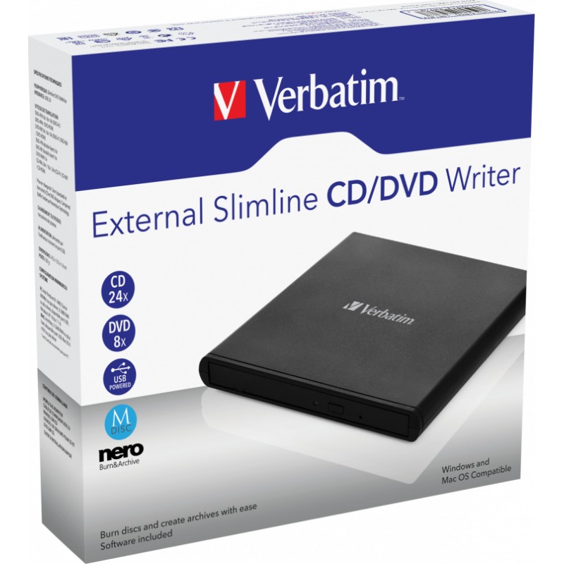 Verbatim External Slimline External Read/Write DVD/CD Desktop/Laptop Black (53504)