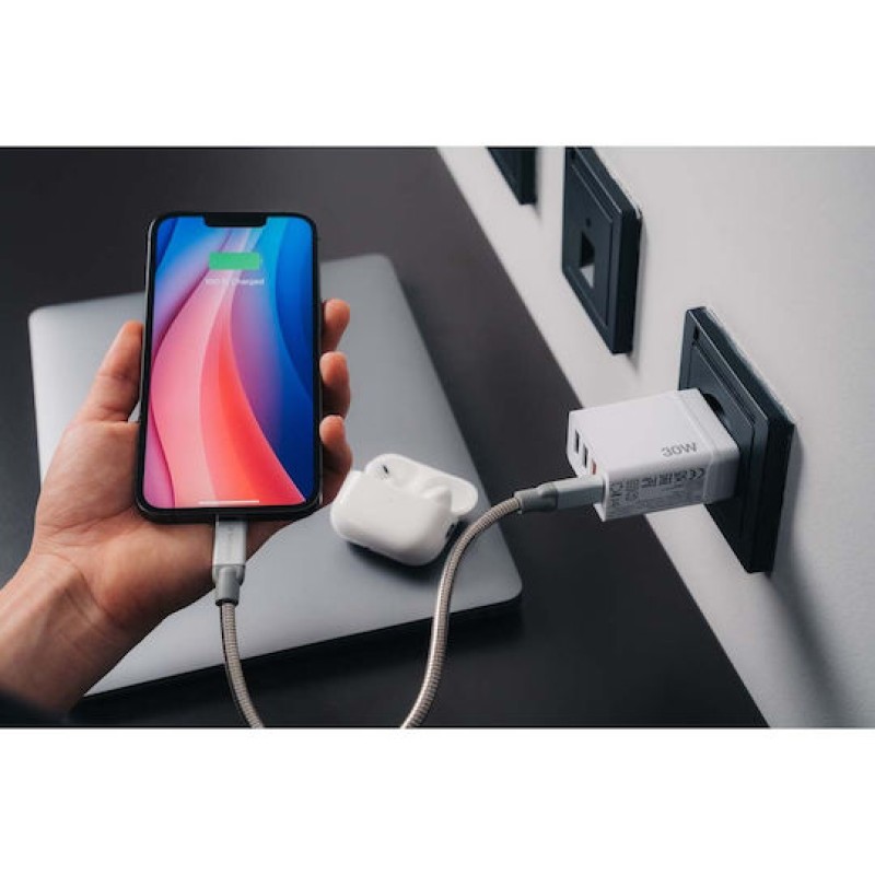Τα προϊόντα που δεν αναγράφουν διαθέσιμο σημαίνει ότι δεν υπάρχουν άμεσα διαθέσιμα στο κατάστημα και θα παραληφθούν το αργότερο εντός των εργάσιμων ημερών που αναγράφεται στη διαθεσιμότητα. Σε κάθε περίπτωση η ημερομηνία μπορεί να μεταβληθεί και θα υπάρχει σχετική ενημέρωσή σας.Ο φορτιστής τοίχου USB 30W της Verbatim περιλαμβάνει μία θύρα USB-C PD 20W και τρεις θύρες USB-A. Υπάρχει μία θύρα USB-A QC 3.0 18W και δύο θύρες USB-A 10W, σε λεπτό σχεδιασμό με σταθερό βύσμα ΕΕ.