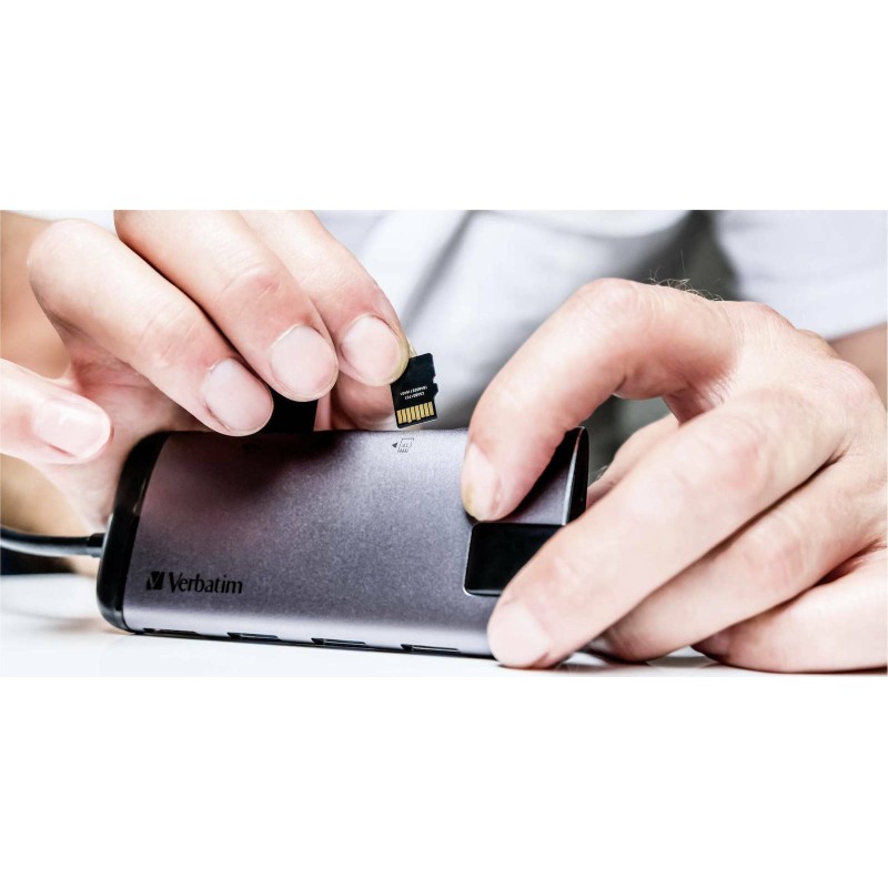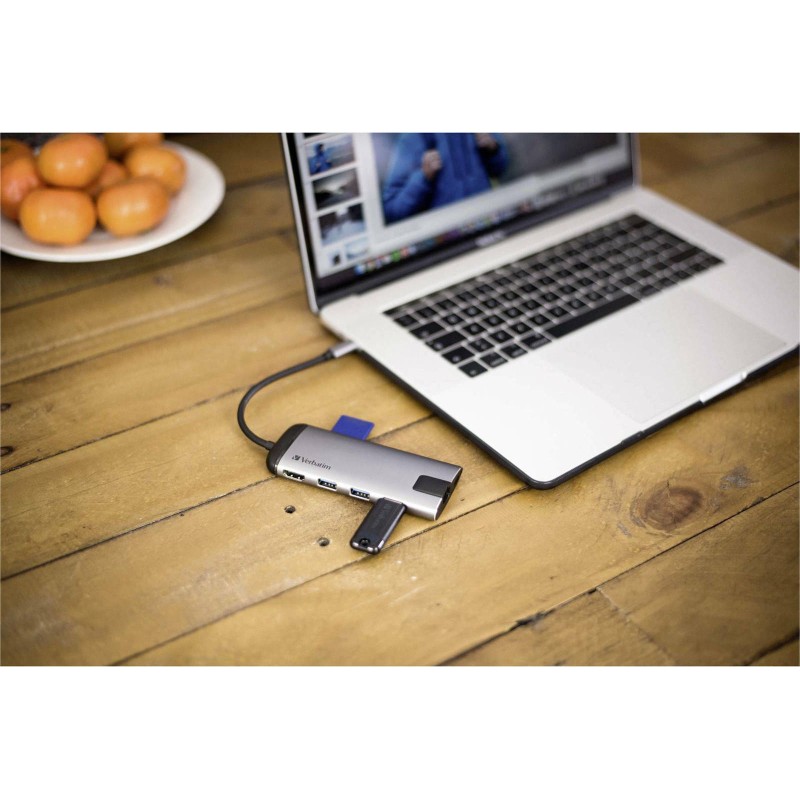 Station της εταιρίας Verbatim που συνδέεται σε Laptop με θύρα USB-C.