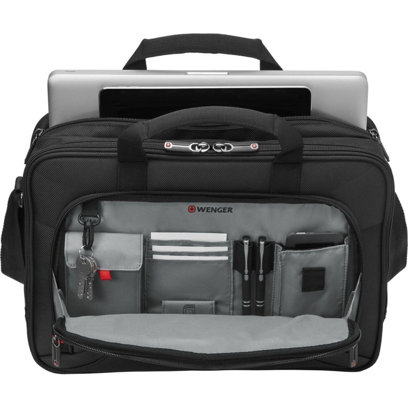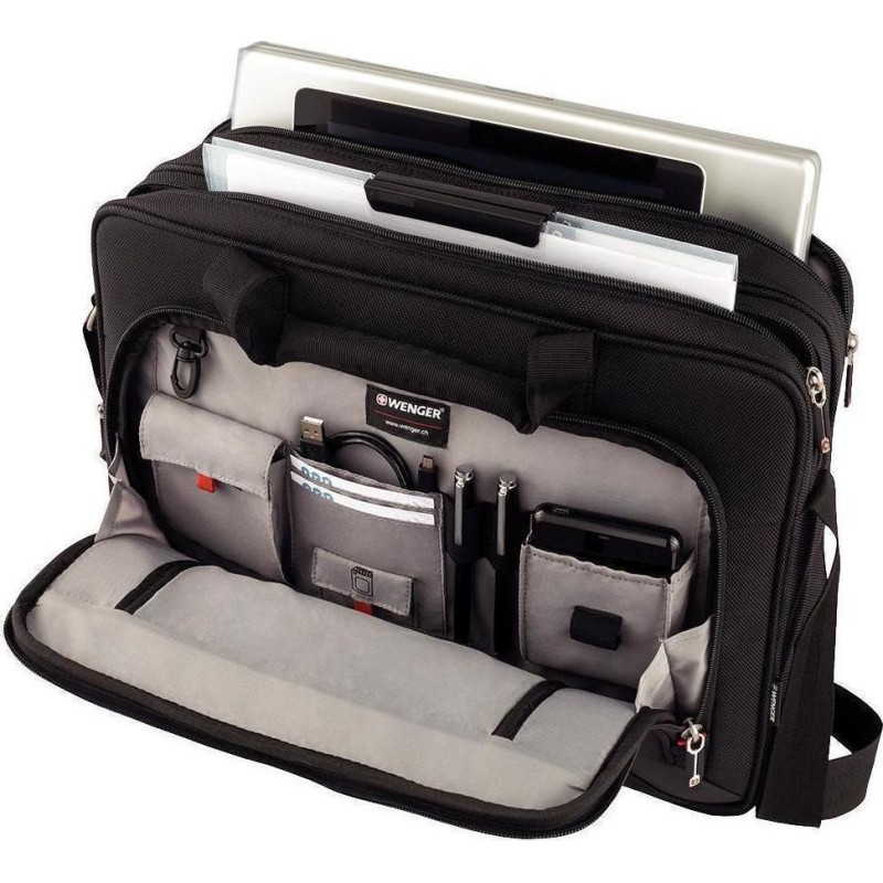 Τα προϊόντα που δεν αναγράφουν διαθέσιμο σημαίνει ότι δεν υπάρχουν άμεσα διαθέσιμα στο κατάστημα και θα παραληφθούν το αργότερο εντός των εργάσιμων ημερών που αναγράφεται στη διαθεσιμότητα. Σε κάθε περίπτωση η ημερομηνία μπορεί να μεταβληθεί και θα υπάρχει σχετική ενημέρωσή σας.Η τσάντα ώμου της Wenger είναι υφασμάτινη και χωράει laptop έως και 16 ιντσών.